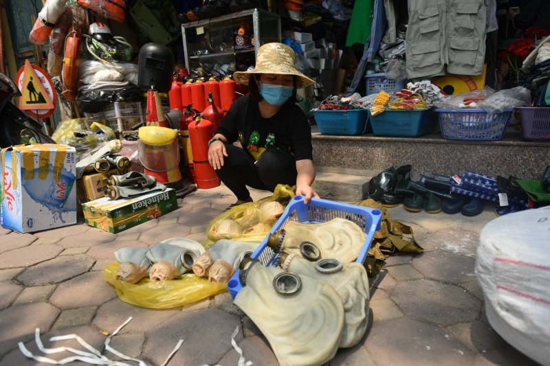 Theo anh Hậu, giá bán mặt nạ phòng độc dao dộng từ 90 – 700 nghìn đồng/chiếc, có 2 loại là 1 phin và 2 phin. Có loại mặt nạ do Nhật Bản sản xuất giá 800 nghìn đồng/chiếc, loại này được làm từ nhựa và màn poly, có phin lọc hoạt tính có khả năng chống bụi, vi khuẩn, khí độc.