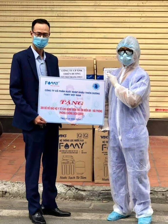 Công ty Cổ phần Xuất nhập khẩu Thiên Dương Famy Việt Nam vừa tổ chức trao tặng thiết bị bảo hộ và khẩu trang cho Bệnh viện Trẻ em Hải Phòng nhằm kịp thời chia sẻ, động viên các cán bộ làm nhiệm vụ phòng, chống dịch Covid-19 nơi đây.