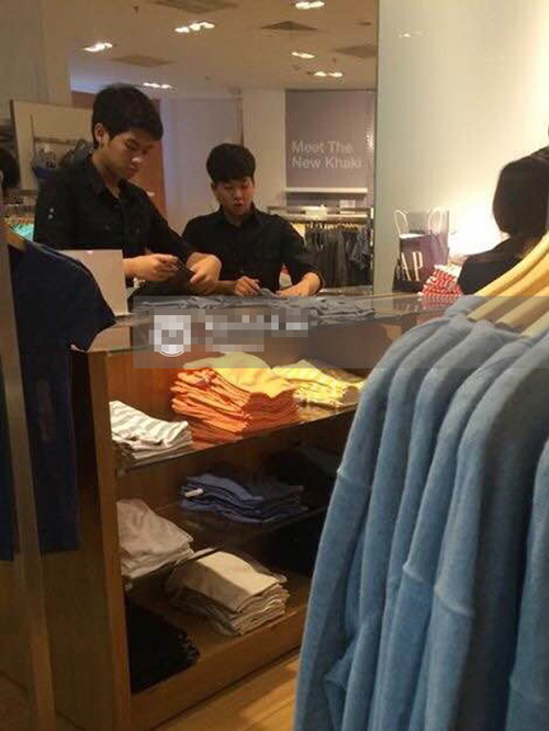 Ngoài việc phục vụ, tư vấn lựa đồ giúp khách, thiếu gia nhà đại gia Hạnh Nguyễn còn cẩn thận xếp lại từng chiếc áo ngay khi khách rời khỏi. |
