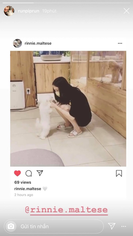 Ngay cả khi Linh Rin chưa hoạt động Instagram trở lại, em chồng Hà Tăng cũng tỉnh thoảng "khoe" khoảnh khắc bạn gái chơi cùng cún cưng.