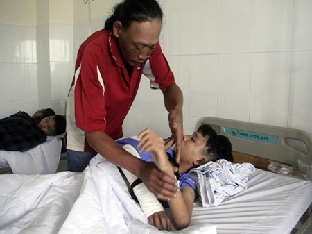 Hòa đang được điều trị tại bệnh viện với nhiều vết thương (Ảnh: Vnexpress) |
