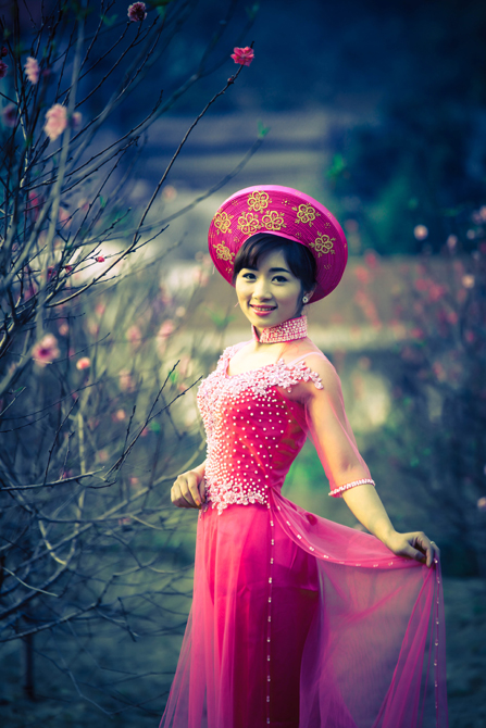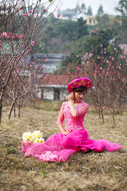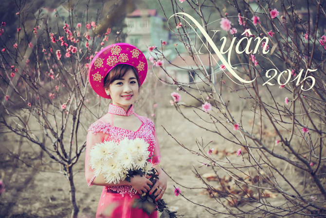 Cô bạn cho biết bộ ảnh được thực hiện tại vườn đào ở Lạng Sơn với chủ đề "Xuân về trên đất Lạng".