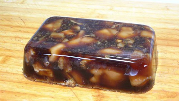 - Bước 5: Thịt đông cứng lại, bạn dùng thìa cạo bỏ phần mỡ đông bên trên cho bớt ngấy. Sau đó gỡ thịt đông ra khỏi khuôn rồi thái miếng vừa ăn là xong.