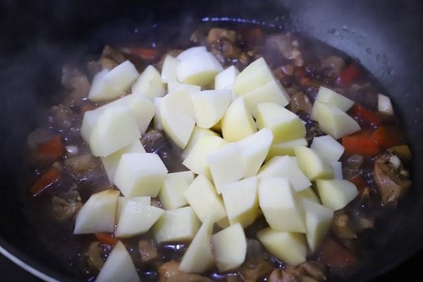 - Bước 2: Xào cho thịt gà chuyển màu ngả vàng thì thêm cà rốt, ớt, gừng và tỏi vào đảo chung. Thêm nước tương, rượu nấu ăn, dầu hào và chút nước vào đun sôi rồi hạ nhỏ lửa đun trong khoảng 10 phút.