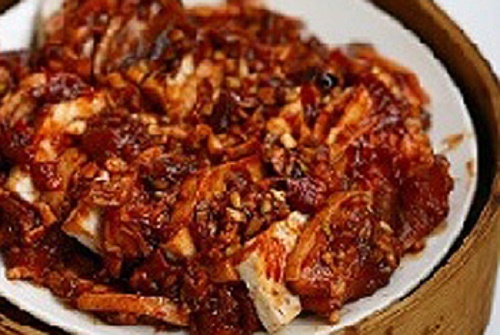 - Bước 5: Xếp thịt và khoai môn xen kẽ nhau vào đĩa. Hấp trong xửng ở lửa to trong khoảng 1 tiếng. Thịt hấp khoai môn khi chín sẽ có mùi rất thơm.