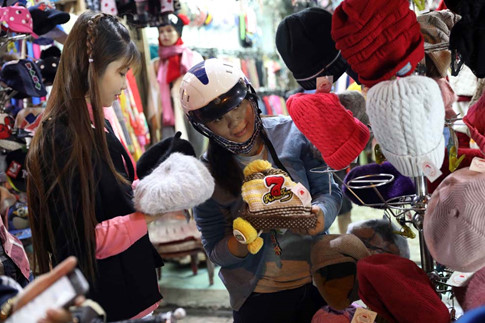 | Các mặt hàng bán chạy nhất là áo khoác, mũ len, khăn len... |