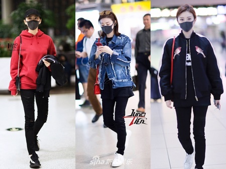 Những khi xuất hiện với trang phục đơn giản, Cảnh Điềm cũng không quên sử dụng chiếc khẩu trang vốn rất hot trong giới showbiz Hoa ngữ 2017. |