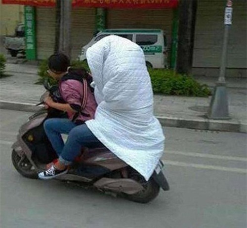 Miền Bắc bước vào đợt rét đậm, nhiều trường học đã bắt đầu thông báo cho học sinh nghỉ học, những người đi làm bắt buộc phải ra đường thì co ro quàng khăn, đội mũ, đeo bao tay, mặc áo ấm... để chống lại cái lạnh tê tái. Trong khi đó, các 'thánh lầy' bá đạo lại sáng tạo ra vô vàn cách chống rét có 1-0-2.
