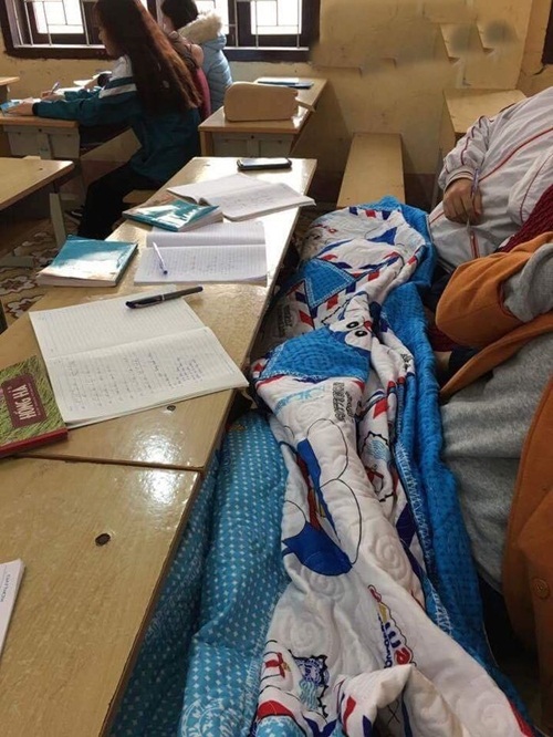 | Mang chăn đến lớp cũng vì bất đắc dĩ. |