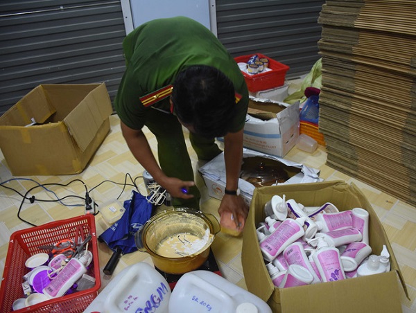 Qua kiểm tra, lực lượng chức năng đã niêm phong tạm giữ 186 kiện hàng gồm nguyên liệu, phụ liệu, bao bì, tem “chống hàng giả”, dụng cụ dùng để sang chiết, pha chế, đóng gói mỹ phẩm và mỹ phẩm đã thành phẩm của Công ty N-Collagen, 1 thau nhựa chứa mỹ phẩm đang pha chế (trọng lượng 10,2 kg), 3 can nhựa chứa dung dịch dùng để pha chế mỹ phẩm (trọng lượng 27 kg), 70 bao bì bằng giấy các - tông có in tên Công ty N-Collagen (chưa qua sử dụng).