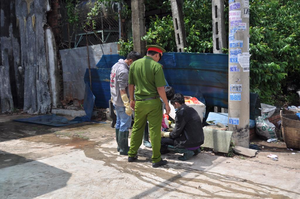 Công tác kiểm tra hiện trường do một nhóm mặc thường phục tiến hành một cách kỹ càng, tỉ mỉ dưới sự giúp đỡ của lực lượng công an.