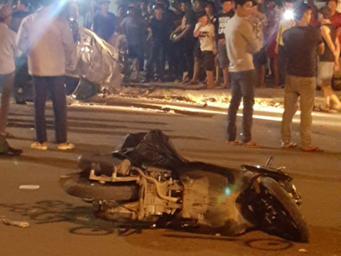 Một xe máy tại hiện trường vụ tai nạn - Ảnh: Thanh Niên |