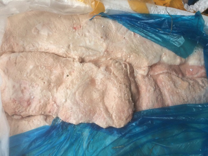 Hơn 10 tấn nầm lợn đông lạnh không rõ nguồn gốc đang được vận chuyển đi tiêu thụ thì bị lực lượng chức năng thu giữ.