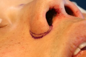 | Vị trí đánh dấu điểm cắt cánh mũi |