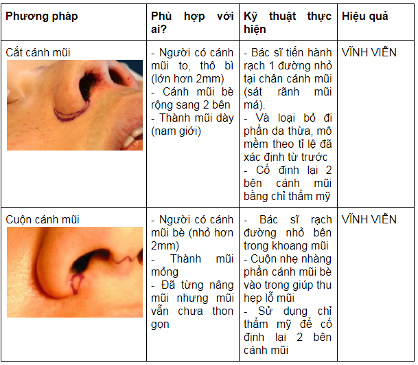 - Cánh mũi thon gọn vĩnh viễn, không lo to trở lại