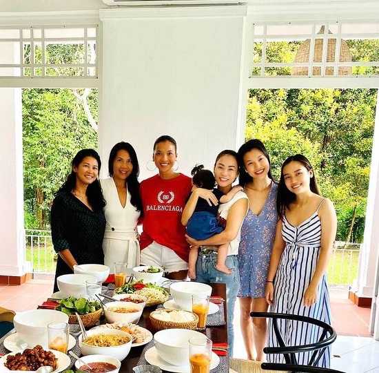 Tối ngày 3/2, trên trang Facebook cá nhân, nữ ca sĩ Thu Minh vừa đăng tải hình ảnh tụ họp của hội chị em dâu Việt đang sống tại Singapore. Trong bức ảnh được đăng tải, bên cạnh Thu Minh có sự tham gia của MC Hoàng Oanh, siêu mẫu Bằng Lăng và nhiều người bạn khác.