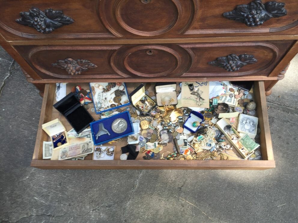 Trong chiếc tủ cũ có một ngăn kéo bí mật, trong đó có rất nhiều nhẫn, kim cương, vàng và hàng loạt món đồ giá trị khác.