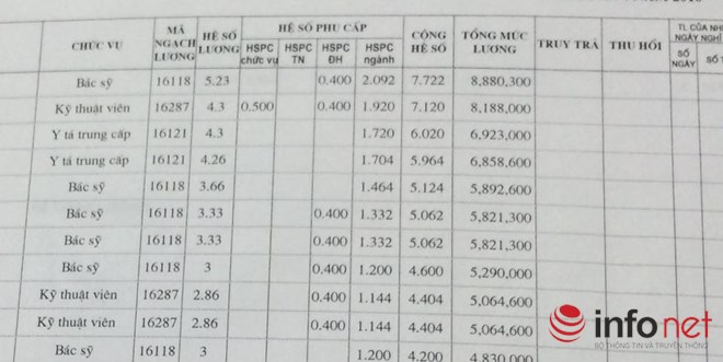 Bảng lương của bác sĩ bệnh viện công lập. (Ảnh: Infonet). |