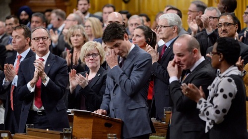 Các nghị sĩ quốc hội Canada bày tỏ sự ủng hộ với lời xin lỗi của ông Trudeau. Ảnh: Australian |
