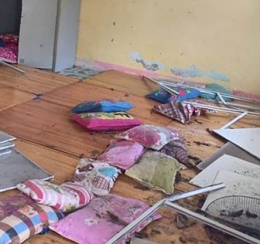Lớp học điểm trường Mầm non bản Giẳng, xã Mường Tè sau trận động đất. Ảnh: TTXVN |