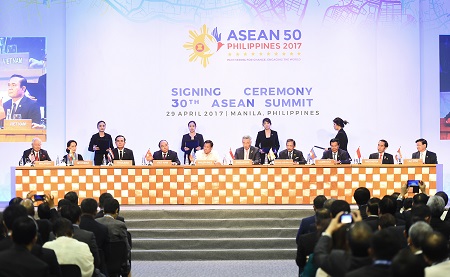 Bàn về tình hình thế giới và khu vực, các nhà lãnh đạo bày tỏ quan ngại đối với những diễn biến phức tạp như tình hình căng thẳng liên quan đến Bán đảo Triều Tiên, các hoạt động quân sự hóa trên Biển Đông và nguy cơ khủng bố lan rộng. Do đó, ASEAN đứng trước yêu cầu cần có tiếng nói chung mạnh mẽ, phát huy vai trò tích cực và đóng góp vào nỗ lực chung duy trì hòa bình, an ninh, ổn định trong khu vực và trên thế giới.