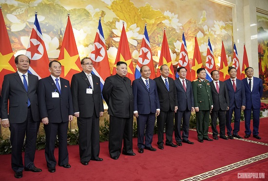 Trước đó, lễ đón Chủ tịch Triều Tiên Kim Jong Un đã được tổ chức trọng thể tại Phủ Chủ tịch dưới sự chủ trì của Tổng Bí thư, Chủ tịch nước Nguyễn Phú Trọng. Sau lễ đón lãnh đạo hai nước đã tiến hành hội đàm.