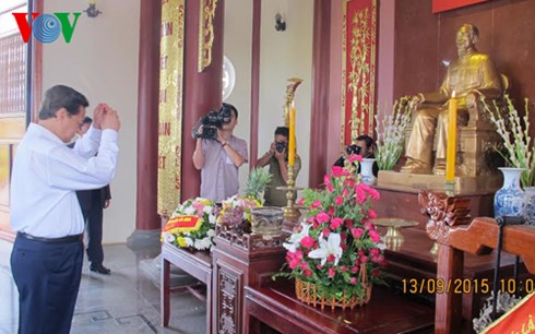 Thủ tướng Nguyễn Tấn Dũng dâng hương tại Nhà tưởng niệm Bác Hồ trong Khu lưu niệm Chủ tịch Hồ Chí Minh tại tỉnh Khăm-muộn |