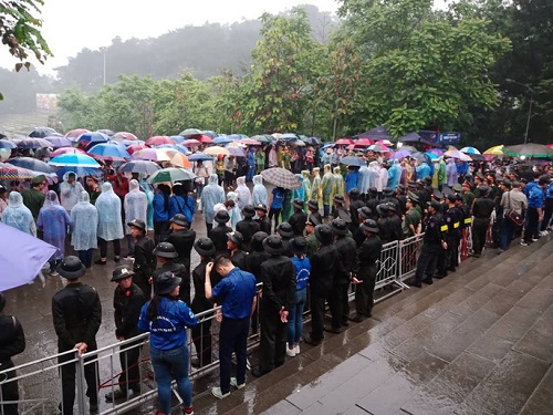 Dù trời mưa nhưng không khí trong lễ dâng hương diễn ra vô cùng trang nghiêm, đảm bảo an ninh. Ảnh: Người lao động |