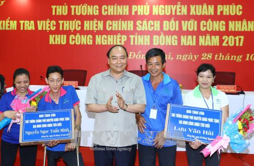 Chiều 28/10, Thủ tướng Chính phủ Nguyễn Xuân Phúc cùng lãnh đạo một số bộ, ngành, Tổng Liên đoàn Lao động Việt Nam và tỉnh Đồng Nai đã tới thị sát, kiểm tra việc thực hiện chính sách, pháp luật đối với công nhân, người lao động, triển khai các thiết chế công đoàn tại tỉnh Đồng Nai.