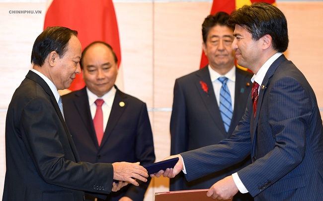 Sau hội đàm, Thủ tướng Nguyễn Xuân Phúc và Thủ tướng Shinzo Abe đã chứng kiến các bộ, ngành và cơ quan hai nước trao đổi 9 văn kiện hợp tác, bao gồm:
