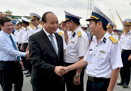 Thủ tướng Nguyễn Xuân Phúc thăm hỏi cán bộ nhân viên Tổng Công ty Tân Cảng Sài Gòn (Ảnh: VGP) |