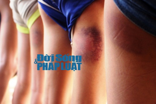 Vết bầm tím ở bắp đùi của các em học sinh. |