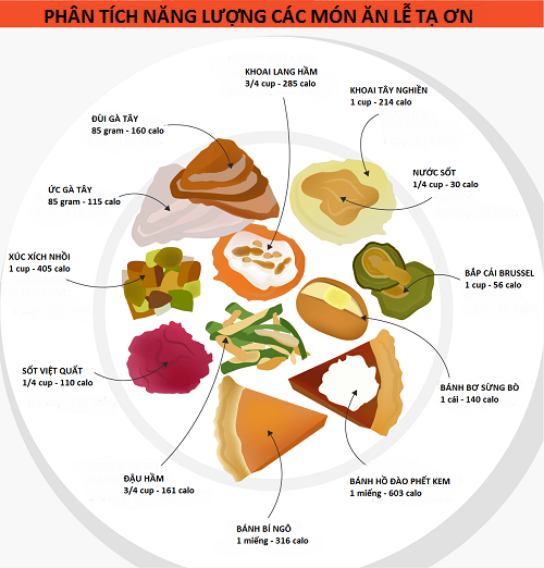 Bạn hãy xem bảng phân tích dưới đây để biết vì sao các món ăn của lễ Tạ Ơn lại mang lại nguồn calo khủng như vậy: