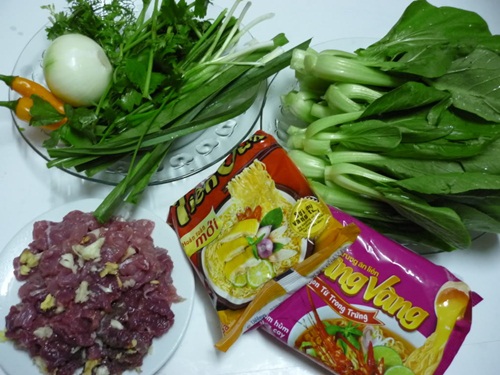 4. Mì tôm rau cải/ngải cứu với trứng/thịt bò