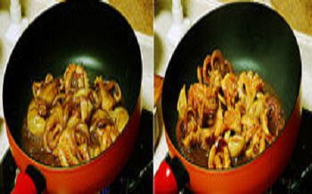 Bạn rửa sạch chảo để xào riêng hành tây và tỏi cho dậy mùi thơm. Tiếp đó, bạn cho bạch tuộc vào và xào đều nhanh tay thêm một lần nữa là xong.