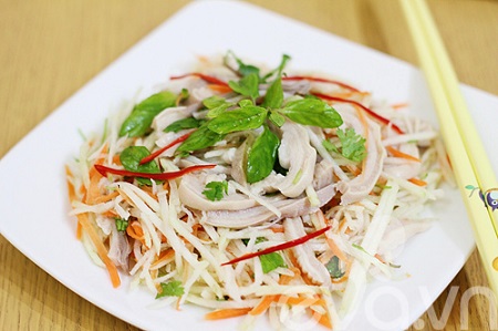 Cho nộm vào một chiếc đĩa trắng sâu lòng, có thể thêm một ít lạc rang và trang trí bằng một nhành rau gia vị/ ớt thái sợi để đĩa nộm thêm hấp dẫn.