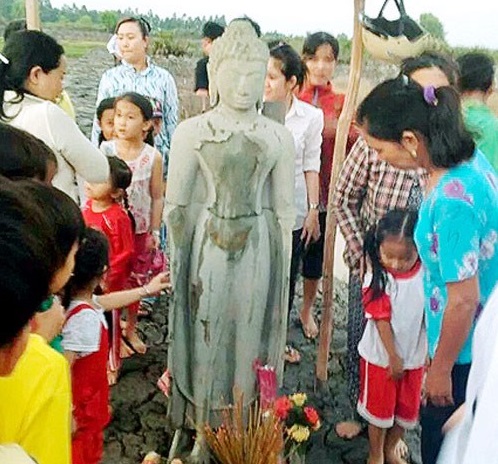 Sau đó, gia đình tôi tiếp tục lặn ngụp đào bới dưới lớp bùn quanh khu vực, thì tìm thấy thêm hai khúc đứt rời của tượng Phật. Lập tức các phần thân tách rời của tượng Phật này được gia đình vệ sinh sạch đưa lên bờ ráp lại rồi báo chính quyền địa phương và thờ cúng cho đến nay. Được biết tượng Phật nữ lạ này được tạc bằng đá Sa huỳnh”.