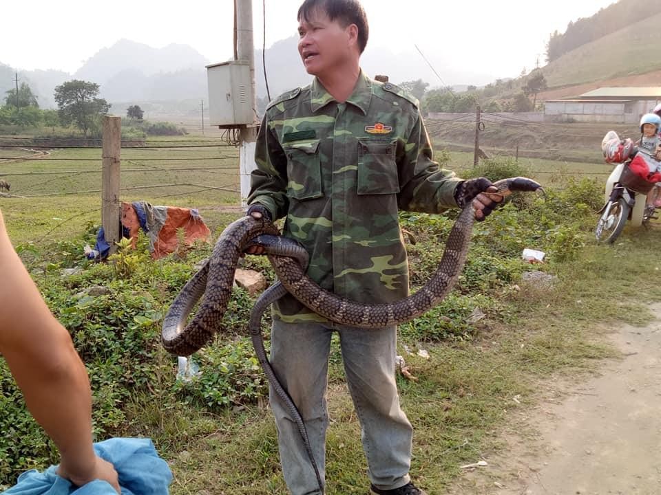 Trước đó, vào chiều ngày 10/4, trên mạng xã hội lan truyền thông tin một người đàn ông dùng tay không bắt con rắn hổ mang chúa cực độc nặng gần 10kg ở ngã ba Vân Hồ, xã Vân Hồ, huyện Vân Hồ, tỉnh Sơn La. Ngay sau khi xuất hiện thông tin, lãnh đạo huyện Vân Hồ đã vào cuộc xác minh, làm rõ thông tin trên.