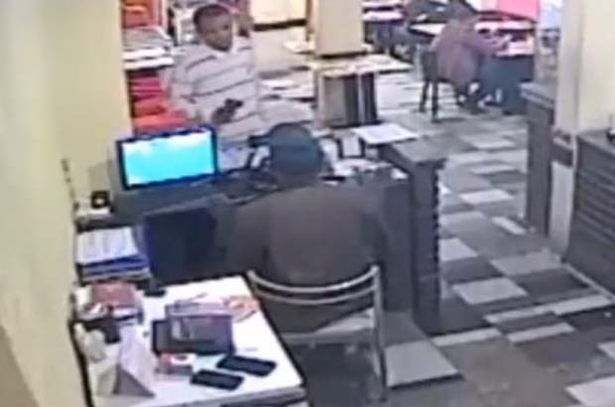 Sau đó, thừa lúc tên cướp quay lưng đi ra các bàn của khách để cướp bóc, người bán hàng đã rút súng của mình ở trong ngăn bàn và bắt đầu bắn vào không khí khiến tên cướp bất ngờ và hoảng hốt quay đầu bỏ chạy.