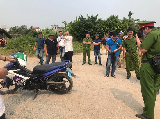 Lúc 13h15, cảnh sát đưa 2 nghi phạm Đinh Văn Giáp (24 tuổi) và Đinh Văn Trường (19 tuổi, cùng quê Yên Bái) ra hiện trường. Đây là bãi đất vắng vẻ, không có nhà dân, cách Bến xe Mỹ Đình khoảng 8 km.