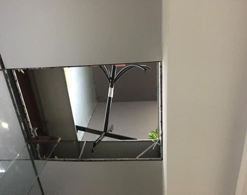 Khi kiểm tra phát hiện có 2 người là nữ Giám đốc công ty S.H cùng nhân viên nằm dưới sảnh tầng 1, xung quanh có nhiều vết máu. Nhìn thẳng phía trên nơi hai nạn nhân rơi xuống có 1 tấm trần bị thủng.