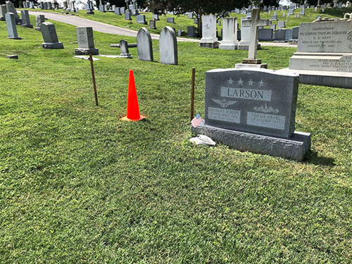Vị trí chôn cất McCain được đánh dấu bằng hai cọc gỗ và cọc tiêu chóp nón màu cam - Ảnh: AP |