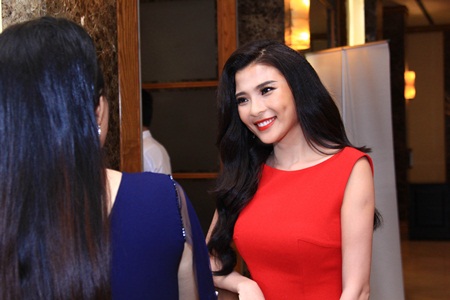 Xuất hiện trong sự kiện với chiếc váy xòe sắc đỏ rực của nhà thiết kế Lê Thanh Hòa, Thúy Diễm khéo khoe nét đằm thắm. Bà xã Lương Thế Thành nhận được nhiều lời khen ngợi bởi nhan sắc ngày càng mặn mà, sắc sảo.