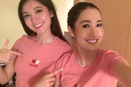 Trước đó, vào tối ngày 8/11 cũng là sinh nhật bạn cùng phòng - Hoa hậu Thái Lan, Thùy Dung dành tặng món quà bất ngờ. Đó là bộ đồ đôi dễ thương cùng tên gọi “Queen”. Người đẹp Thái Lan vô cùng bất ngờ và quyết định mặc đồ đôi cùng Thùy Dung để chụp hình kỷ niệm và livestreeam với khán giả Việt Nam.