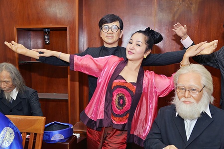 Trở về Việt Nam tham gia game show “Hoán đổi cặp đôi” với tư cách giám khảo cùng danh hài Chí Tài, diễn viên Thúy Nga đã có buổi “hội ngộ” đầy thú vị với các đồng nghiệp như NSƯT Hoài Linh, Thành Lộc, Hồng Vân; diễn viên Quyền Linh, Minh Nhí… tại một công ty tượng sáp.