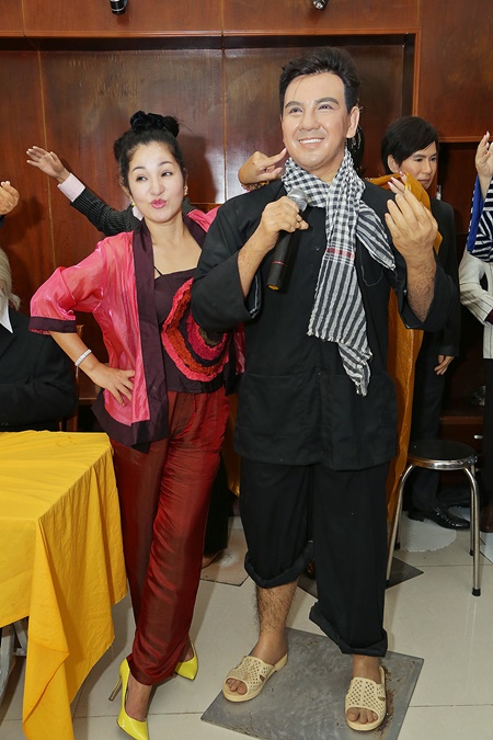(ĐSPL) - Nữ danh hài "bày tỏ tình cảm" với bức tượng của người anh thân thiết Hoài Linh.