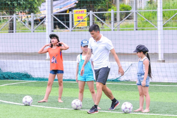 Trước những buổi tập luyện căng thẳng, Thủy Tiên đã đưa các học trò của mình đá bóng cùng ông xã Công Vinh. Đây là một hoạt động vô cùng bổ ích để các em rèn luyện thêm thể lực đồng thời giúp các em có thời gian nghỉ ngơi thoải mái trong mùa hè vô cùng sôi động.