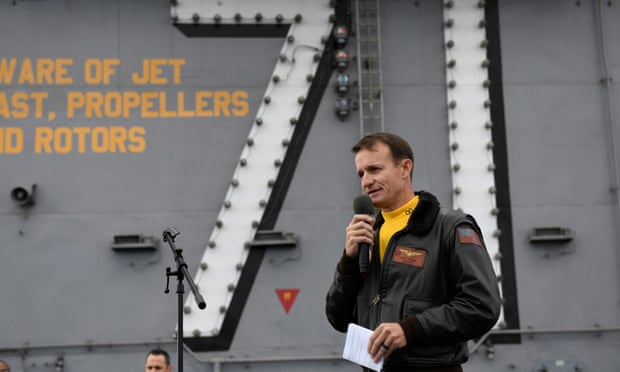 Thuyền trưởng Brett Crozier của tàu sân bay Mỹ USS Theodore Roosevelt đã bị cách chức. Ảnh: Guardian |