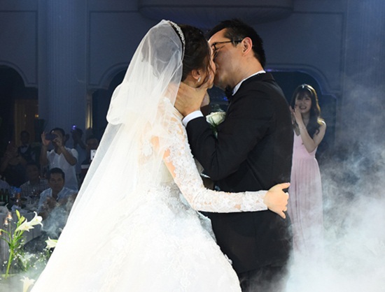 Cô dâu chú rể trao nhau nụ hôn nồng nàn. Ảnh: VnExpress |