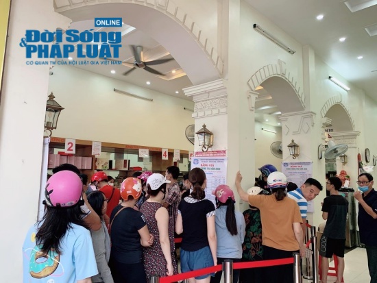 Trái với khung cảnh tiêu điều, vắng vẻ tại các quầy bánh Trung thu vỉa hè, cửa hàng bánh Đông Phương tại Hải Phòng luôn tấp nập người xếp hàng đợi mua từ tờ mờ sáng.